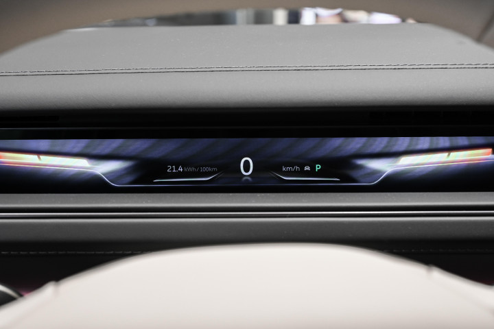 车身侧面的隐藏式门把手,冬天不会冻住,我在零下 3 度的早晨试了,一按就弹开;21 英寸轮毂搭配静音轮胎,过减速带时胎噪很小,后排孩子睡觉不会被吵醒。车尾的贯穿式尾灯,雨天刹车时辨识度很高,跟车的货车司机后来跟我说 “老远就看到你的刹车灯,很清楚”。