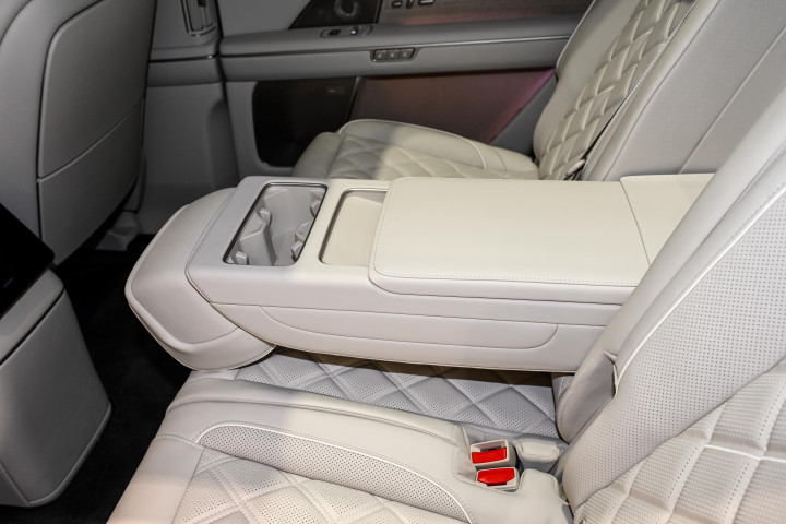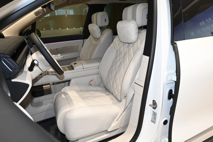 坐进车内,第一感觉是 “不压抑”。全景天窗很大,白天采光特别好,孩子总说 “像在帐篷里看天空”。内饰用的 Nappa 真皮,摸上去很细腻,不是那种硬邦邦的人造革,夏天坐久了也不闷汗 —— 以前试的某款增程车型,真皮座椅夏天粘腿,还得套坐垫。